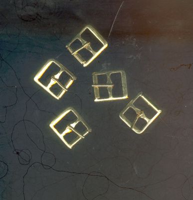 5 GOLD DRESS BUCKLES 4 -ANTIQUE FRENCH BLEUETTE BISQUE