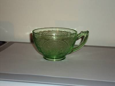 Title (ebay affiliate link): "Horseshoe" No. 612 Green Depression Glass Cup - Mint