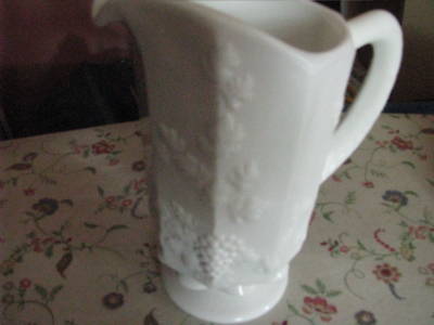 WESTMORELAND WHITE MILK GLASS PITCHER PANELED GRAPE