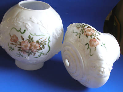 REPLACEMENT GWW MILK GLASS SHADES LAMP RELIEF ROSES