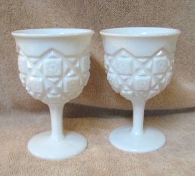 2 Vtg Westmoreland Old Quilt Milk Glass Water Goblet