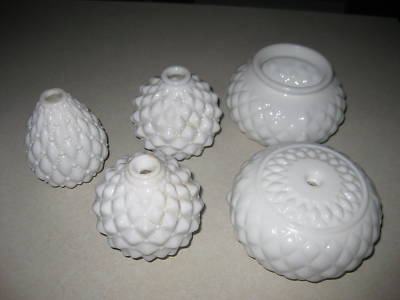 LOT 5 DIAMOND QUILT MILK GLASS LAMP FIXTURE PARTS