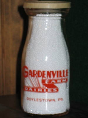 1/2 PT. MILK BOTTLE GARDENVILLE DAIRY DOYLESTOWN, PA.