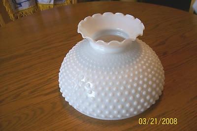 Vintage White Milk Glass Hobnail Hurricane Shade 7" T.