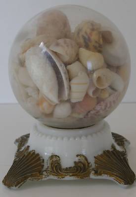 Antique English Gilt Milk Glass Seashells Souvenir