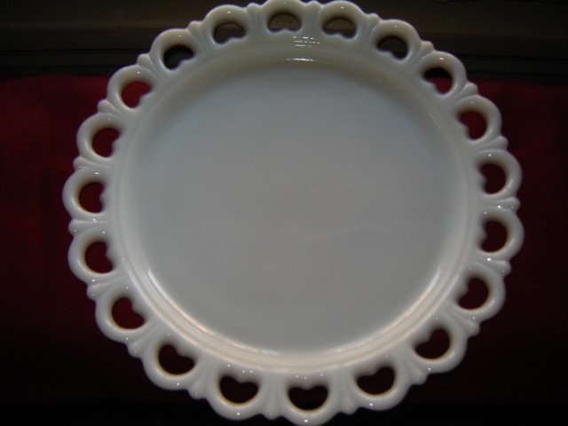 VNTG Anchor Hocking Lace Edge Milk Glass Cake Plate
