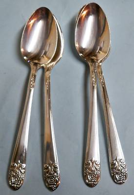 Title (ebay affiliate link): 4 MELODY TEASPOONS-1954 MELODY SIL PLATE-NICE!
