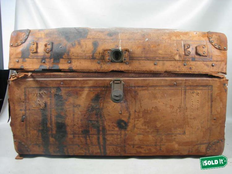 Title (ebay affiliate link): ANTIQUE LEATHER TRAVELER TRUNK 19TH CENT. GERMAN EXPORT