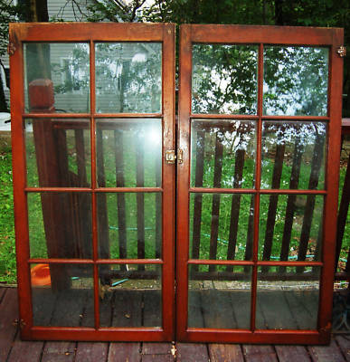 set of antique wood 8 panel glass cabinet doors 100 yrs