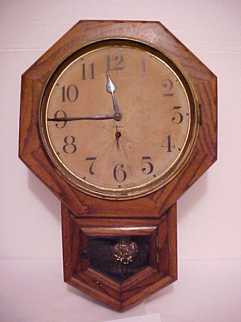Title (ebay affiliate link): ANTIQUE 1900s WATERBURY OAK WOOD WALL CLOCK 8 DAY WIND