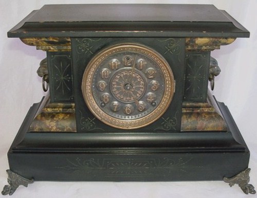 Title (ebay affiliate link): Antique Black E. N. Welch Mantel Shelf Clock, DeMurska