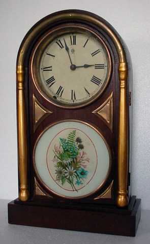 Title (ebay affiliate link): ANTIQUE COLOR FLORAL GLASS PANEL CHICAGO MANTLE CLOCK
