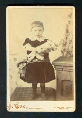 GIRL & ANTIQUE BISQUE DOLL *1890's CABINET CARD PHOTO