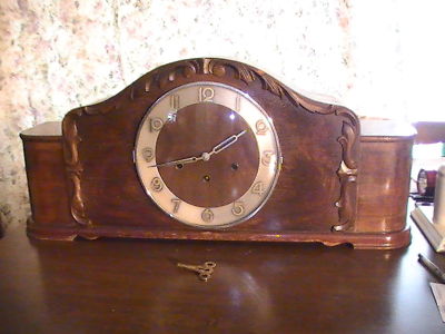 VERY LARGE WOOD ANTIQUE GERMAN MANTLE PENDULUM CLOCK