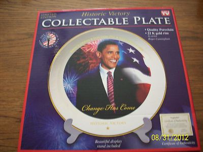 OBAMA HISTORIC VICTORY COLLECTABLE PLATE OF QUALITY PORCELAIN WITH 22K GOLD RIM