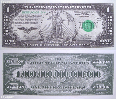 HTF LOT 5 ZILLION US DOLLARS BILLS Barack Hussein OBAMA Debt Plan NEW US NOVELTY