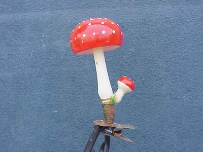 Title (ebay affiliate link): Vintage Glass Christmas Clip On Ornament of Mushrooms