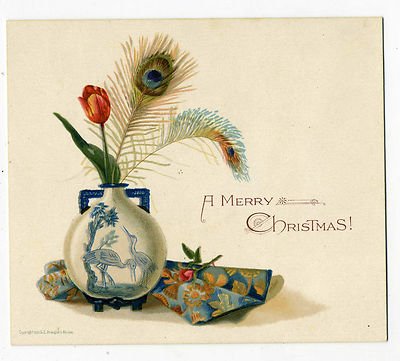 Title (ebay affiliate link): 1881 L. PRANG CHRISTMAS CARD - VASE WITH TULIP AND FEATHERS - BEAUTIFUL IMAGE