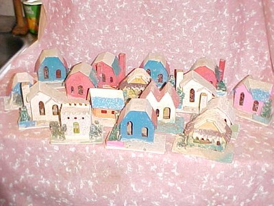 Title (ebay affiliate link): 16 Vintage Japan Putz Mica Paper Village Houses Christmas Decoration LOT