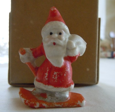 Vintage TINY Bisque SANTA on SKIS Made in JAPAN for Christmas Village or Putz