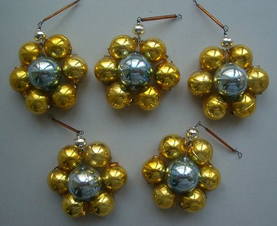 Title (ebay affiliate link): 5 VTG BOHEMIAN GLASS BEADED FLOWERS CHRISTMAS ORNAMENTS