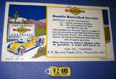VTG 1932 Blue Sunoco Gas Motor Oil Blotter 1948 License Key Chain F18