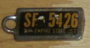 Title (ebay affiliate link): Vintage 1957 Mini New York License Plate Tag 1.5x.5in KEYCHAIN