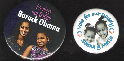 Title (ebay affiliate link): 2 Sasha & Malia OBAMA Vote for our Daddy photo buttons: 2008, 2012