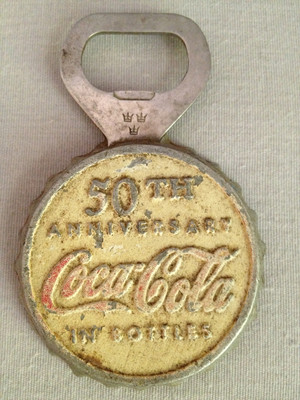 Title (ebay affiliate link): ANTIQUE 50 YEAR ANNIVERSARY SWEDISH COCA COLA BOTTLE OPENER SWEDEN 3 CROWNS RARE