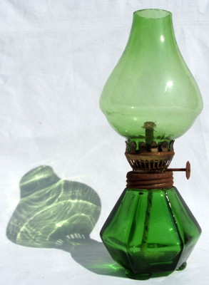 1960's FOREST GREEN GLASS OIL LAMP - MADE IN HONG KONG