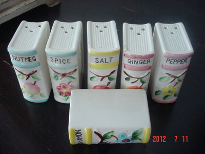 6 PIECES VINTAGE BOOKS SPICES SHAKERS MADE IN JAPAN