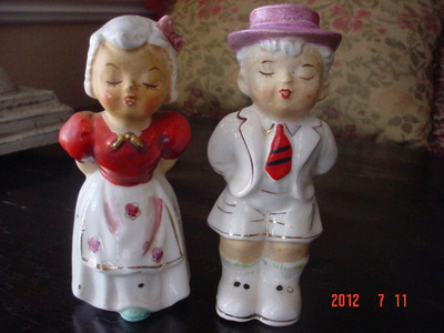 VINTAGE ENGLISH BOY and GIRL SALT AND PEPPER SHAKERS