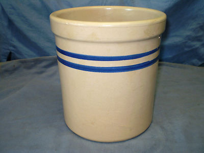 Antique Pottery Ceramic Crock Hand Made Americana 1 Gal. with Cobalt Stripes