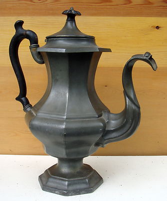 ANTIQUE LARGE 1830s LEONARD REED & BARTON PEWTER TEAPOT