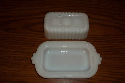 VINTAGE ANCHOR HOCKING WHITE MILK GLASS 1/2 STICK BUTTER DISH EX. CONDITION NR!