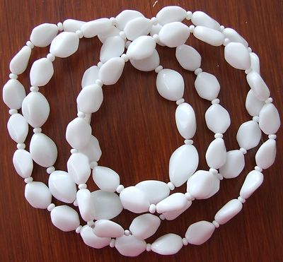 VINTAGE 1950s LONG WHITE MILK GLASS BEAD NECKLACE