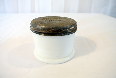 Title (ebay affiliate link): Antique Vintage Milk Glass ADS Peroxide Cream Jar Silver Lid