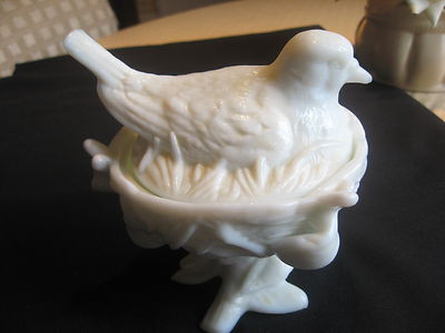VINTAGE WESTMORELAND MILKGLASS BIRD ON NEST CANDY DISH