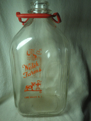 Title (ebay affiliate link): 1950s Welsh Farms Half Gallon Glass Milk Bottle Long Valley NJ Morris New Jersey