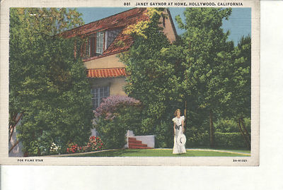Title (ebay affiliate link): Home of Janet Gaynor, Hollywood, California VINTAGE 1930s Movie Star Postcard!