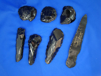 Title (ebay affiliate link): Lot of 4 Pre-Columbian Obsidian Tools and 3 Scrapers