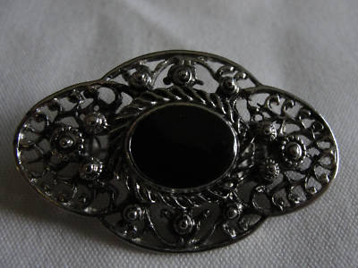 Title (ebay affiliate link): VINTAGE ANTIQUE SILVERTONE DETAILED PIN W/ BLACK STONE