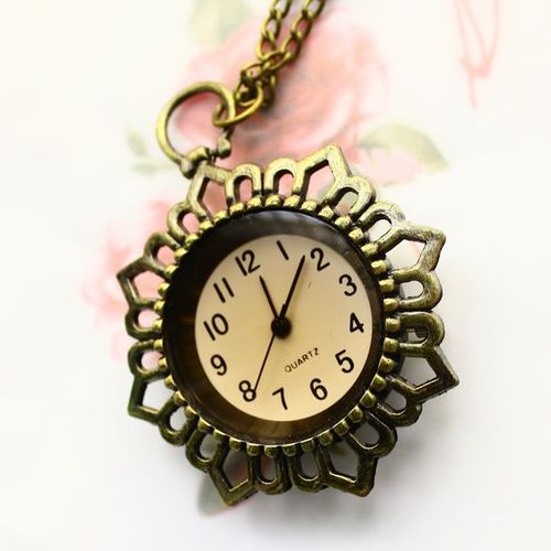 Title (ebay affiliate link): Elegant Carvings Lotus Antique Necklace Chain Quartz Clock Pocket Watch