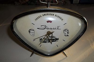FOSSIL TABLE CLOCK WITH 1950'S CADILLAC ON FRONT