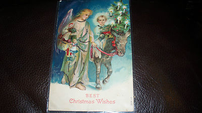 Title (ebay affiliate link): Glittered Christmas Postcard with Angel & Cherub on Burro