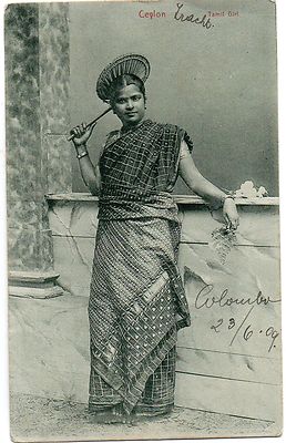 Title (ebay affiliate link): A Beauty from Celyon 1909 Female tradional dress on p/c to Austria 2x5 cent ad