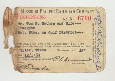 Title (ebay affiliate link): 1961-1963 Employee PASS for Missouri Pacific Railroad Company TRACKMAN old paper