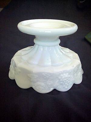 WESTMORELAND PANELED GRAPE PUNCH BOWL MILK GLASS BASE