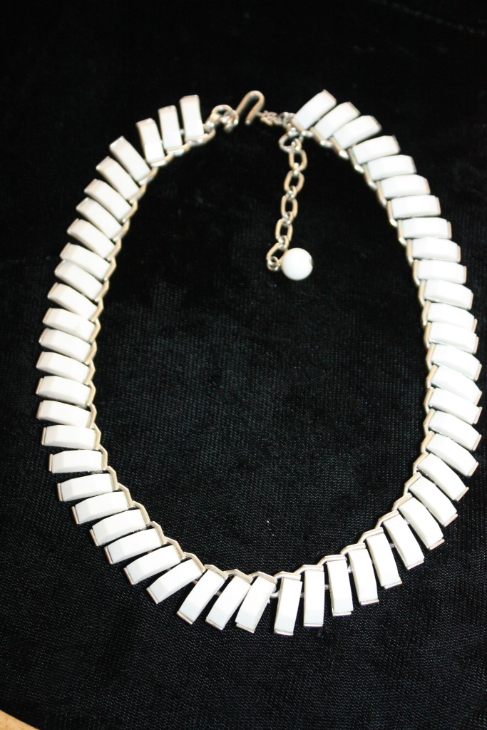 Vintage Signed Trifari Necklace W/Milk Glass Inlays