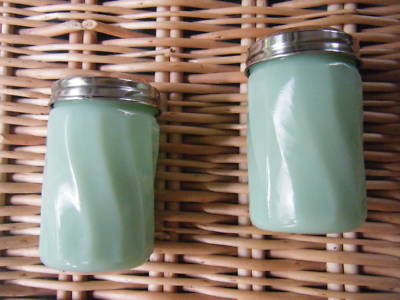 VINTAGE GREEN MILK GLASS SALT & PEPPER SHAKER SET
